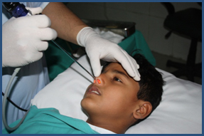 A Nasal endoscopy is being carried out in the clinic. This is a comfortable and a safe procedure which is tolerated by young children as well. |